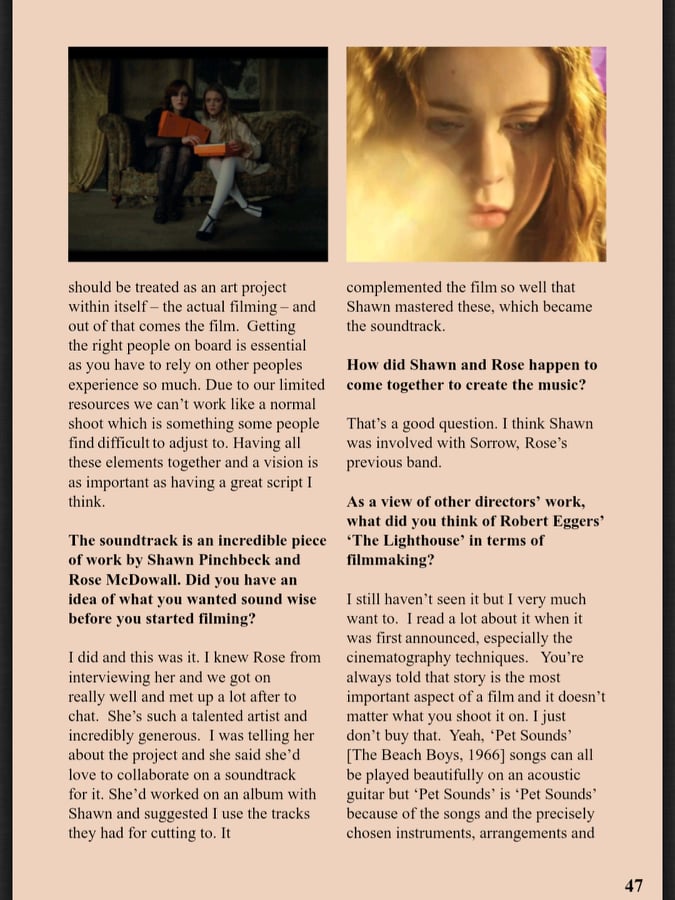 For example, our film didn’t really have much of a story and we knew that would be picked up by reviewers so we put “story and logic come secondary to atmosphere and terror, a dreamy nightmare captured on film.” to give the impression this was always intentional (which genuinely was true).